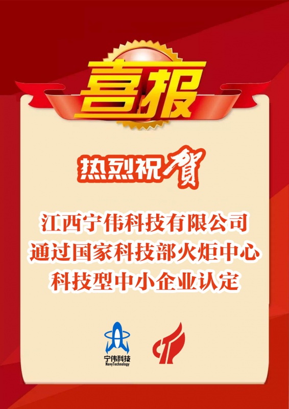 江西寧偉科技有限公司通過科技部火炬中心科技型中小企業(yè)認(rèn)定