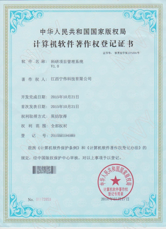 江西寧偉科技有限公司成功獲得《科研項(xiàng)目管理系統(tǒng)》軟件著作權(quán)證書(shū)
